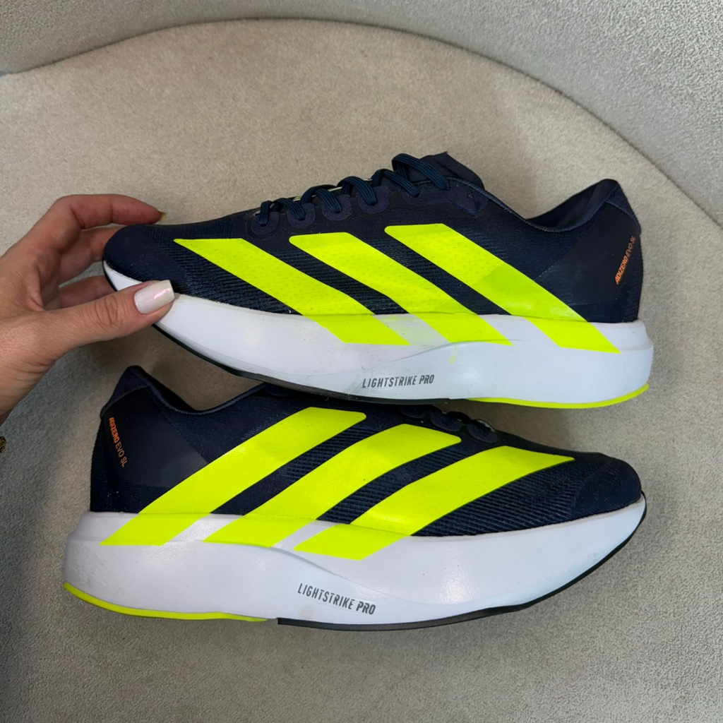 O design minimalista e esportivo confere ao Adizero um visual moderno, ideal para quem gosta de unir estilo e desempenho em um calçado único.