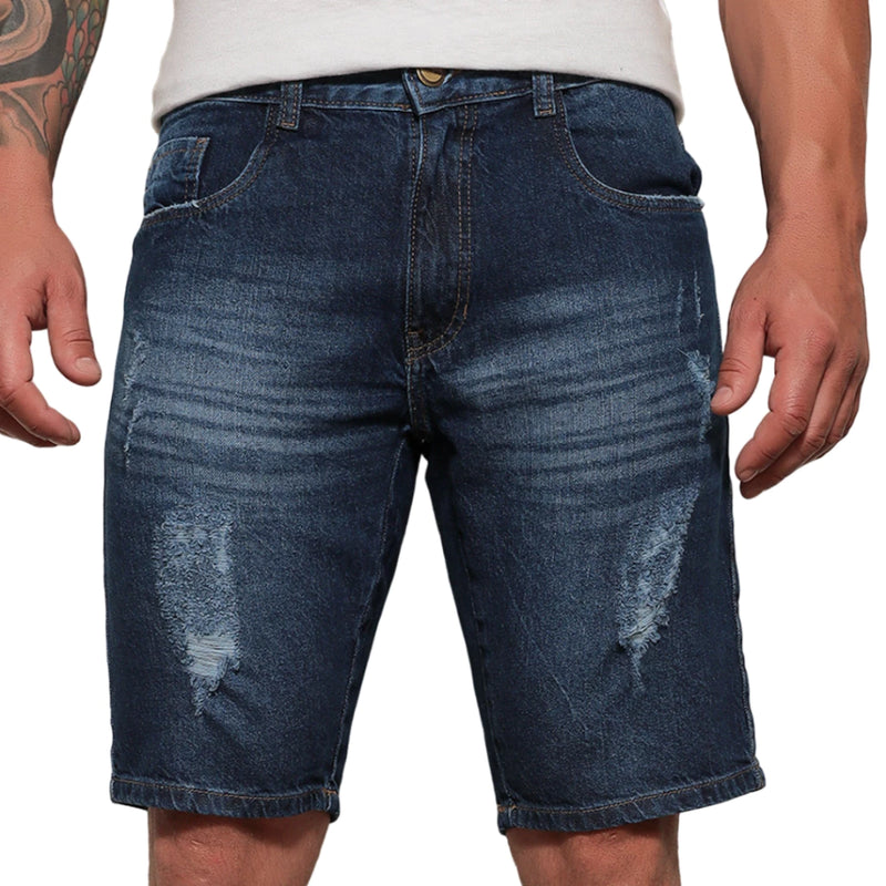 Bermuda Jeans Escuro Masculino Rasgada Evandro