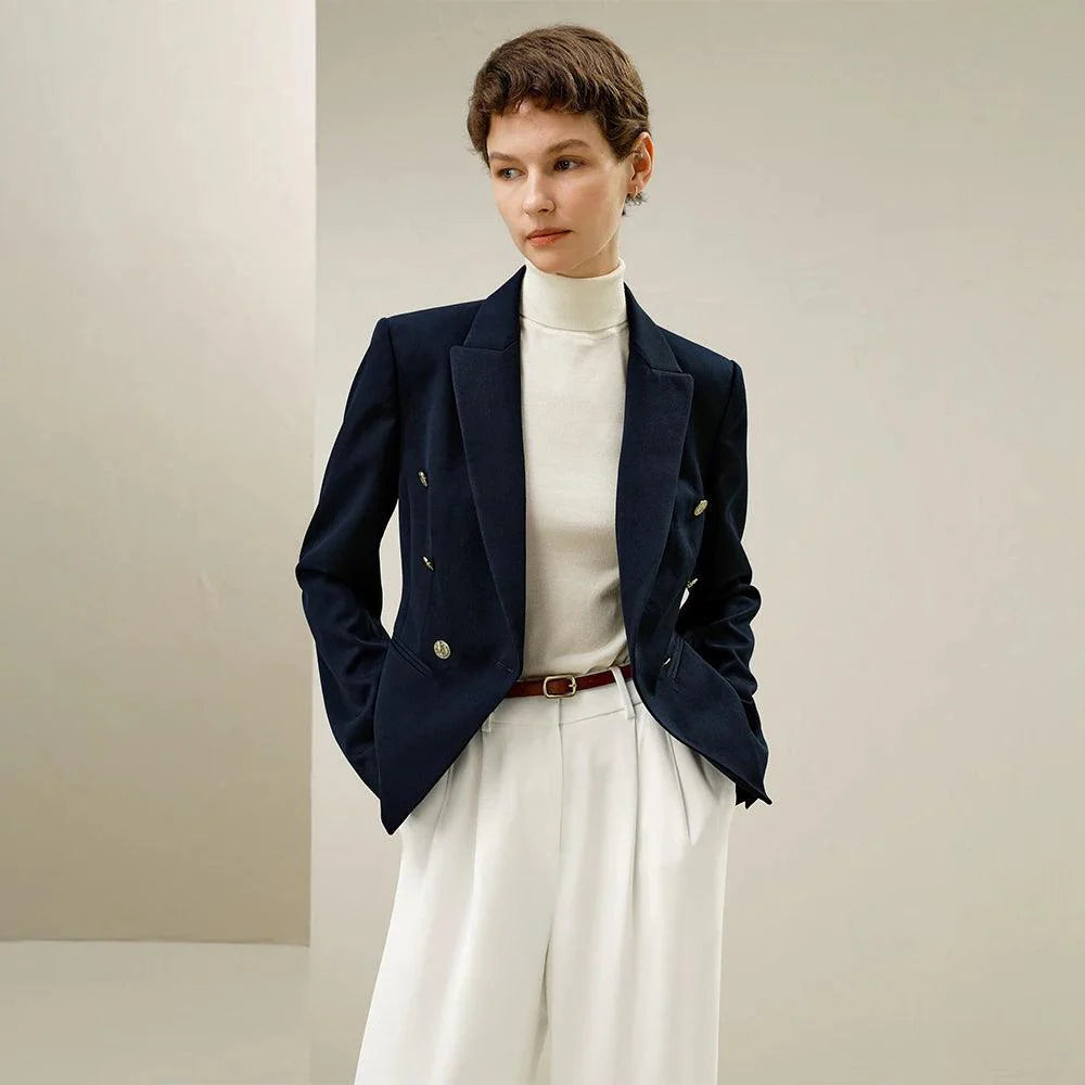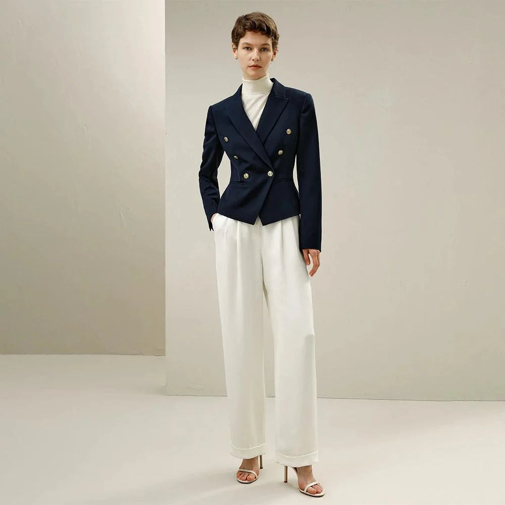 Material: Tecido de sarja de lã penteada | Forro: Jacquard de cetim 16MM | Botões Frotais Funcionais | Bolso Lateral