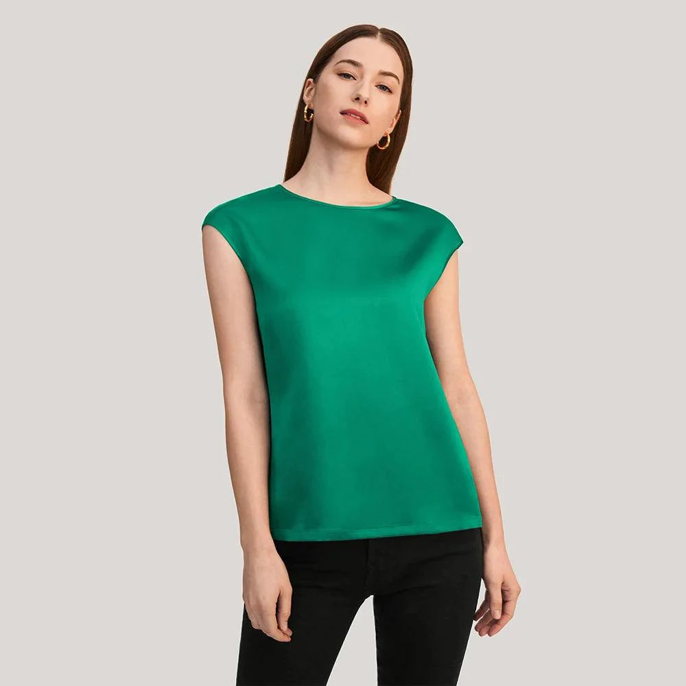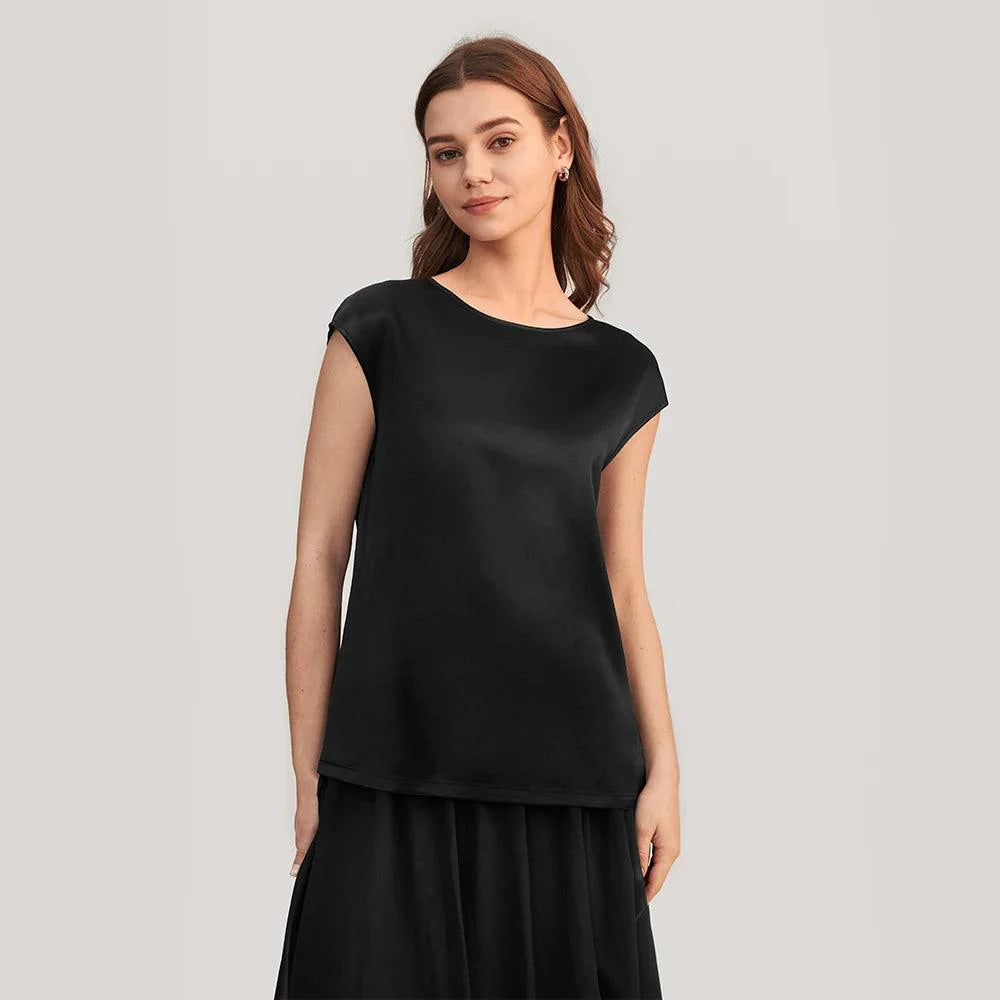 Experimente a sensação de conforto e luxo ao vestir a Blusa Momme de Seda.