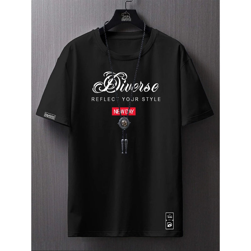 Reflete seu estilo, reflete sua atitude. A palavra "Diverse" vem estampada no peito, destacando um estilo moderno e ao mesmo tempo clássico, com uma tipografia cursiva elegante que traz uma vibe única; uma declaração: você não é definido por rótulos, você é diverso, você é plural, e seu estilo reflete isso.