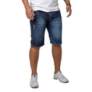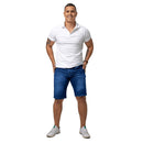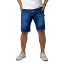 KIT 2 Bermuda Masculina Jeans Azul Médio Lisa e Azul Bigode Puido Com Elasticidade