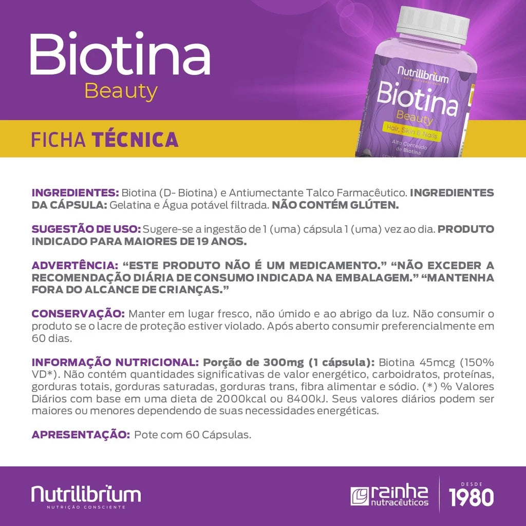 Biotin, also known as vitamin B7, is an essential and water-soluble vitamin. Its main objective is to contribute to the maintenance of hair and skin, in addition to assisting in the metabolism of energy and macronutrients proteins, carbohydrates and fats.
