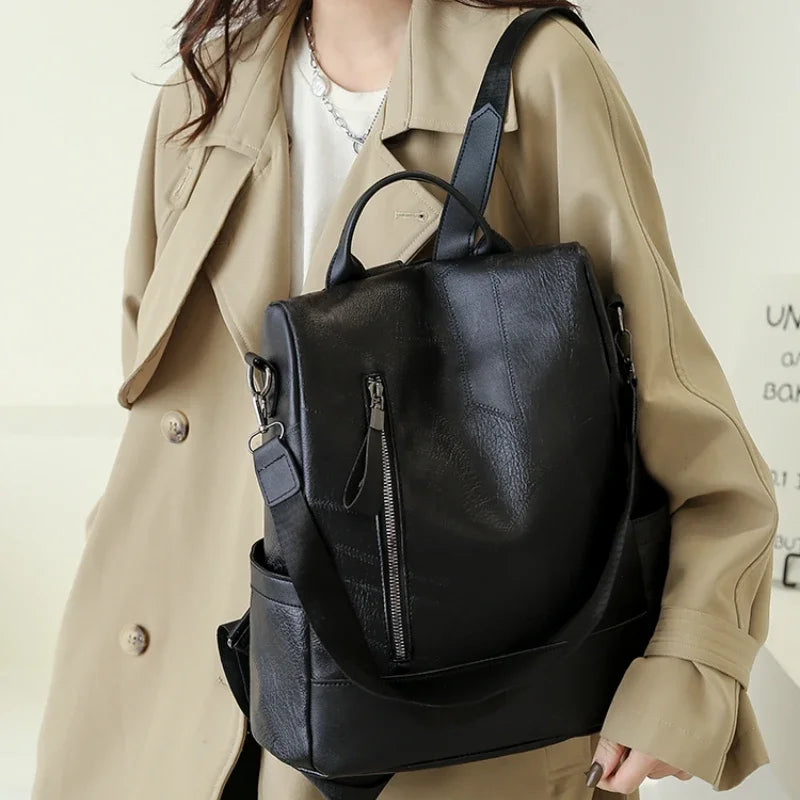 Adicione um toque de elegância à sua rotina com a nossa Mochila de Couro Monocromática com Zíper.