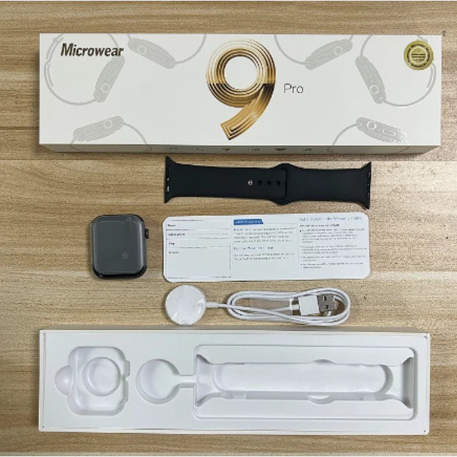 Smartwatch Watch 9 Pro W59 Pro Series 9 Smart Watch Women Men Launch 2023 Original Approved by Anatel * Copying our advertisement subject to report The W59 Pro Series 9 Smartwatch is designed to meet your daily needs and keep up with your lifestyle. Equipped with diverse and advanced features, it is much more than a simple watch. With heart rate monitoring, step counter and sleep monitoring, you can take care of your health and well-being, in addition to having a sports monitor with more than 100 modes. Compatible with iOS and Android smartphones, you can easily sync the smartwatch with your mobile device and receive real-time notifications directly on your wrist. Never miss an important call, urgent message or social media update again. Its premium finish and carefully designed details make it a statement piece in any setting, from the office, gym or even a sophisticated dinner party. Characteristics: • Case size 47mm; • Colors: Black, Silver, Rose Gold and Blue • Has a lock on the bracelet; • Compatible with Android and iOS systems; • Make and receive calls via Bluetooth; • Change Bracelets (Compatible with bracelets in size 42/44/45/49); • Rotating crown that is functional and integrative with the system; •HD infinite screen with high resolution; • Display 2'02; • Screen lock by password; • Several language options, including Brazilian Portuguese. Smartwatch functions: • Receive WhatsApp messages; • Receive messages from Social Networks; • 8 Interactive Menu Styles with the System; • Lock WatchFaces; • NFC (for opening electronic doors); • Dynamic games mode; • Personalize the screensaver with a photo or video from your gallery; • GPS with real-time location (integrated in the App); • Background options available in the app; • Emergency SOS call; • Weekly health analysis in the app; • Remote control of the cell phone camera; • Music player (Spotify, Deezer, etc.); • Phonebook (save your contacts); • Screen lock with password (protect your data); • "Lost" mode to find your Smartwatch or cell phone; • Measures heartbeat; • Measures blood pressure; • Measures oxygen in the blood; • Sleep monitoring; • Step monitoring; • Monitoring calories burned, distance, time and steps during training; • Monitoring women's health (fertile period, menstrual cycle and pregnancy); • Sports monitoring with more than 100 modalities (Walking/Running/Climbing/Basketball/Badminton/Football/Yoga/Table Tennis/Skipping Rope/Tennis/Horse Riding/Weight Lifting/Yoga, Zumba, Dance, Etc.); • Sedentary reminder; • Reminder to drink water; • Quick shortcut tabs on the home page (personalize with the functions you use most); • Night mode (do not disturb); • Calculator; • Flashlight; • Lampshade; • Massage mode; • Climate weather; • Breathing/anti-stress and anxiety training; • Voice assistant; • Stopwatch; • Music Player; • Remote control of the cell phone camera; • Countdown; Recommendations: Compatible with Android 4.4 and above, IOS 9.0 and above Do not use chargers higher than 5V/1A. Do not use fast chargers (TURBO) or higher than indicated The watch is not waterproof, do not get your Smartwatch wet Keep the seals found on the back of the product on your Smartwatch, this guarantees authenticity and warranty Items included: 1x W59 Pro Smartwatch 1x Silicone Bracelet; 1x Wireless induction charger cable; 1x User Manual; 1x Film 1x Optional Metal Bracelet