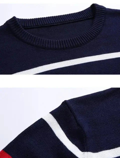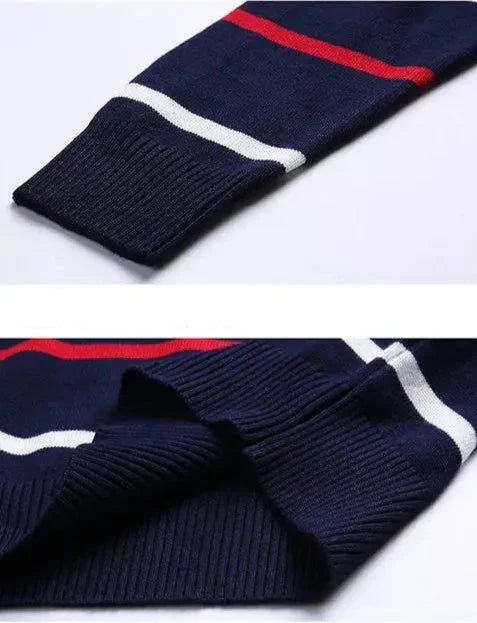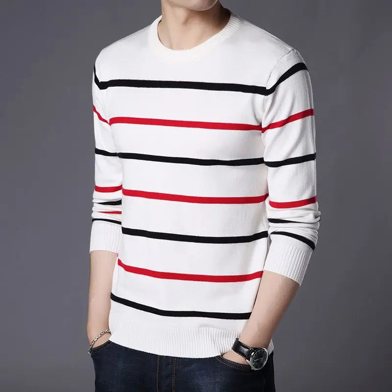 Envolva-se no aconchego deste suéter listrado, perfeito para um visual descomplicado e cheio de estilo.