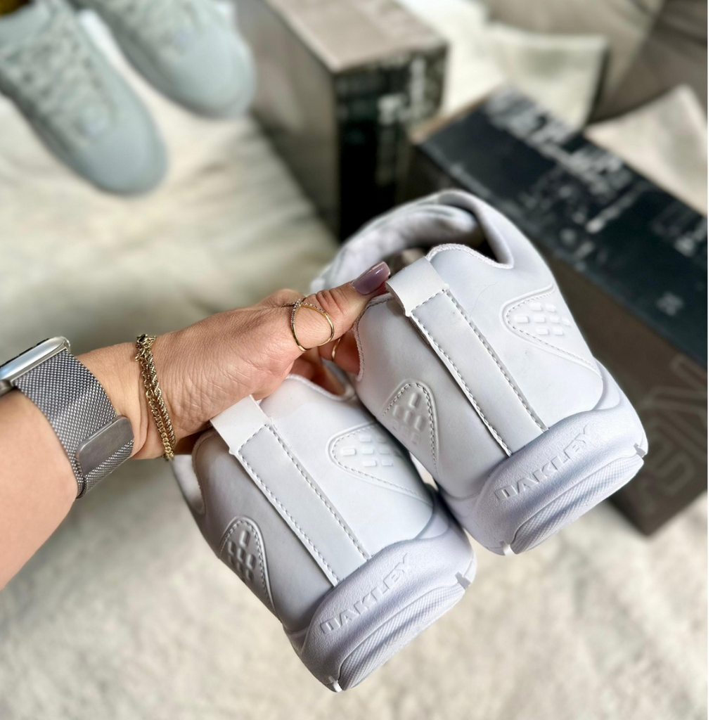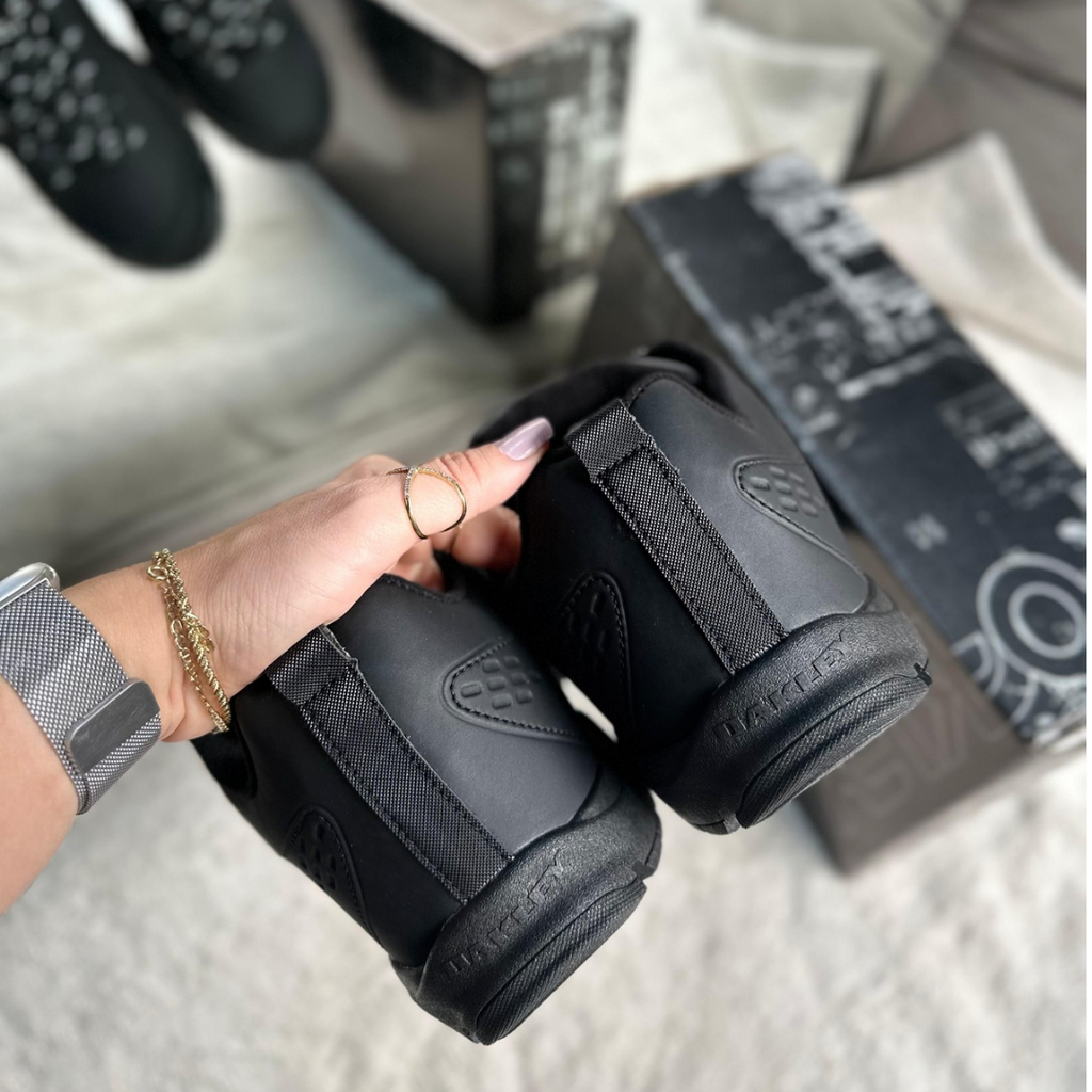 A palmilha anatômica de 9 mm oferece amortecimento e suporte para longos períodos de uso, e o cadarço de primeira linha assegura ajuste firme e preciso. Detalhes como o metal Oakley aplicado e o acabamento premium da caixa e papel de seda personalizados reforçam a autenticidade e o cuidado nos mínimos detalhes.