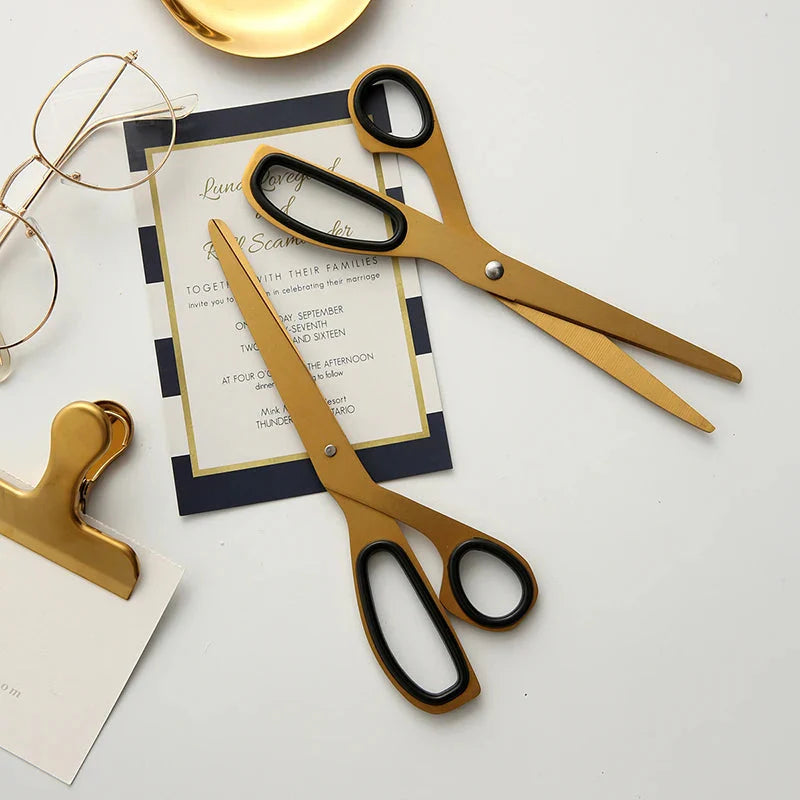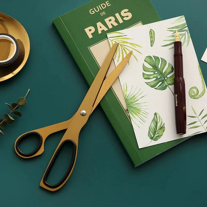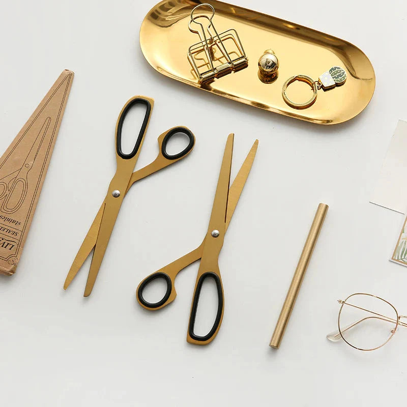 A Tesoura de Aço Inoxidável Dourada combina sofisticação com funcionalidade. Com um design assimétrico simples inspirado no estilo nórdico, esta tesoura adiciona um toque de elegância a qualquer ambiente. Equipada com uma lâmina de aço inoxidável de alta qualidade e ponta reta, oferece precisão e durabilidade para uma variedade de tarefas. Com 20cm de comprimento, é perfeita para cortes precisos e detalhados.