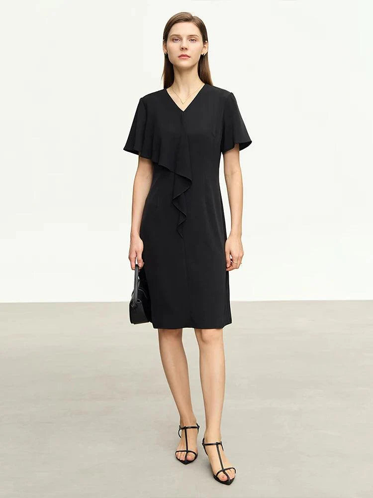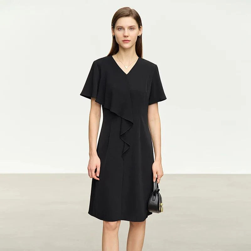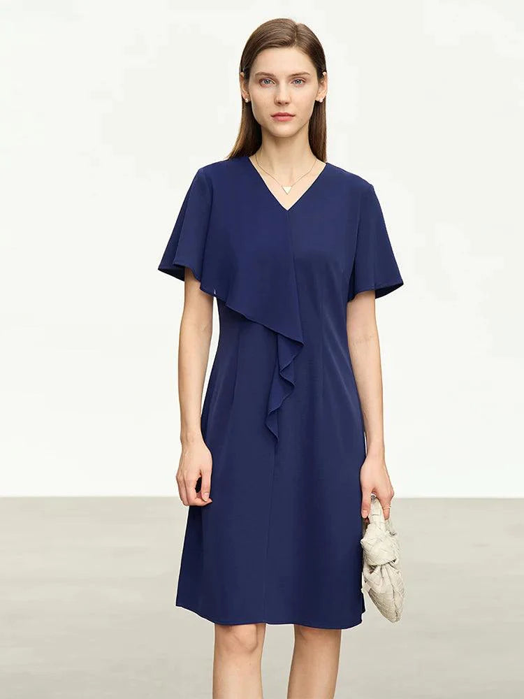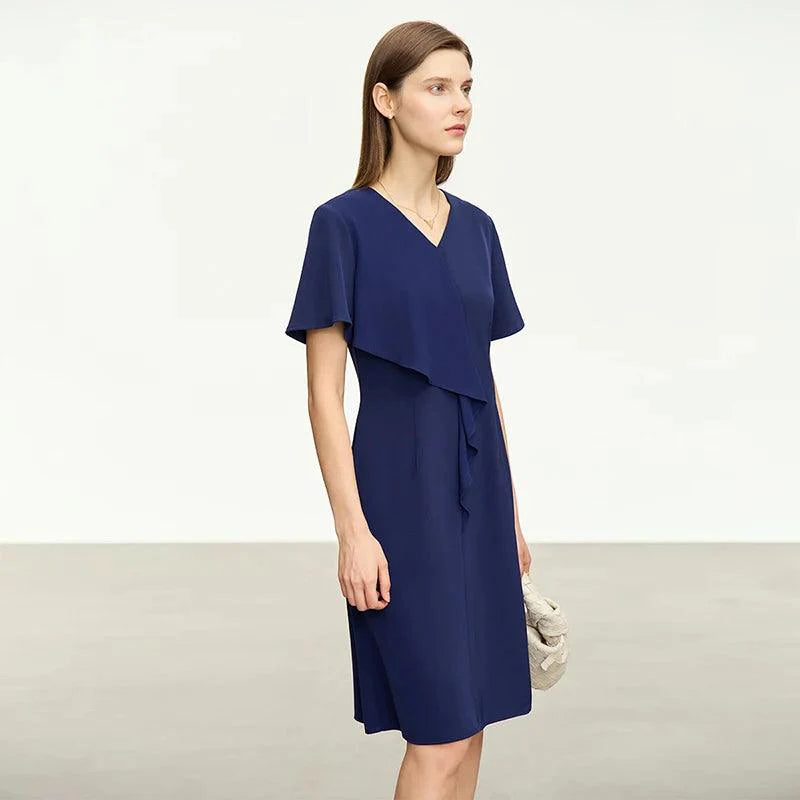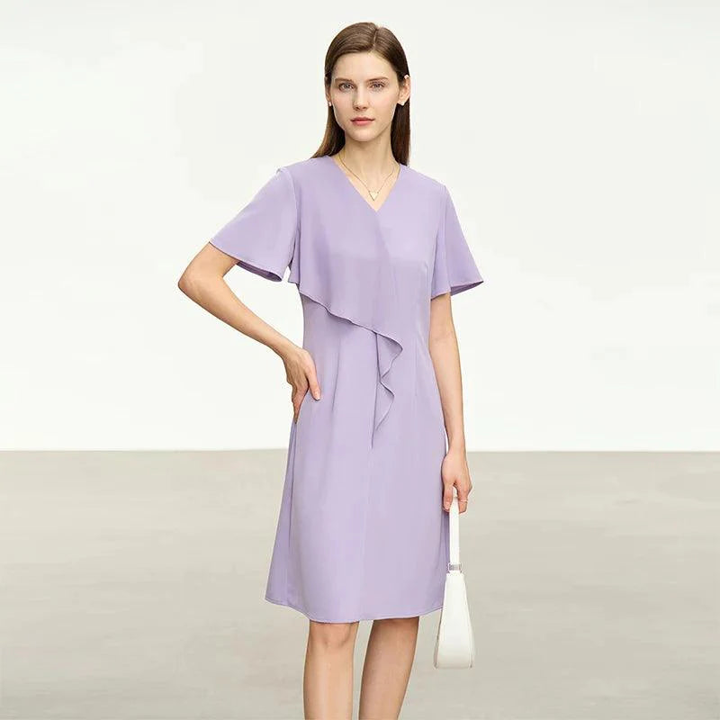 Este vestido de chiffon oferece um caimento frontal elegante e sofisticado.