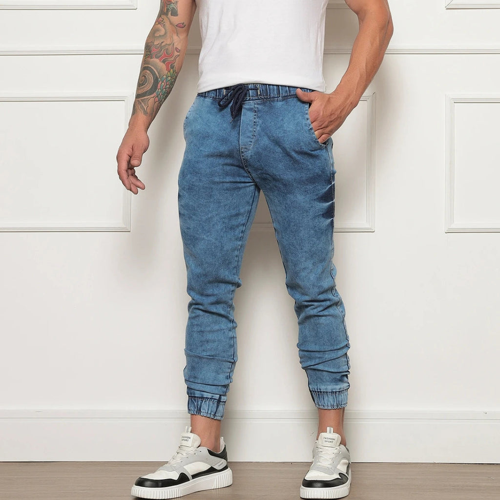 Adicione a calça jogger jeans à sua coleção e destaque-se com um look único.