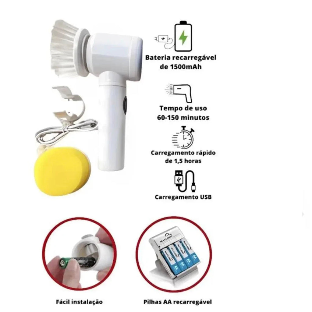 Escova Elétrica Multifuncional - Kit Completo para Limpeza Eficiente
