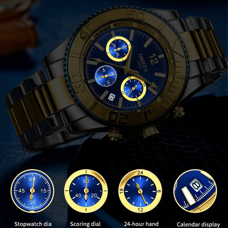 O Relógio Nibosi Premium possui design único com cronógrafo funcional incrivelmente pensado para te dar poder e impressionar em cada detalhe.