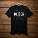 A palavra "Black" é estampada com um design exclusivo, onde a letra "A" é substituída por uma silhueta estilizada de uma metrópole, capturando a essência de arranha-céus e a vida agitada das grandes cidades. Esta abordagem artística não é apenas um design, mas uma história visual contada através de uma única letra.
